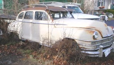 The Traveler was a Windsor model that had become near and dear to us. Just a year before we'd hauled one, san engine, back from Illinois. Intended as a parts car for our '48 New Yorker, we'd come to love its "Elmer Fudd" look as we stared at it in the rear view mirror all the way. We never dreamed we'd see another one for sale let alone one in decent shape. So, when we saw another one on ebay, we knew this Traveler was ours.